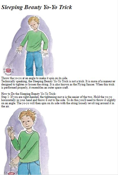 Sleeping YoYo: تعلم كيفية جعل YoYo ينام (تدور في نهاية الخيط) لفترة طويلة، وهو أمر ضروري لأداء العديد من الحيل.