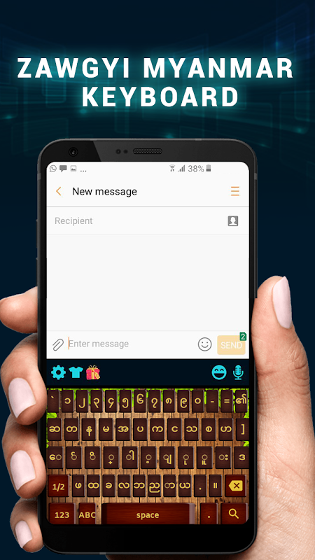 - لوحة المفاتيح الجديدة Zawgyi ميانمار مع الرموز التعبيرية تسمح لك بالكتابة باللغة Zawgyi ميانمار.