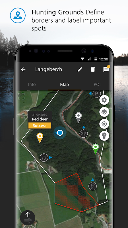 ارسم حدود منطقة الصيد الخاصة بك، وحدد المناطق المحظورة وحدد النقاط المثيرة للاهتمام على خريطتك الأرضية مثل الجلد المرتفع والمقعد المرتفع ونقطة التغذية وغيرها الكثير.
