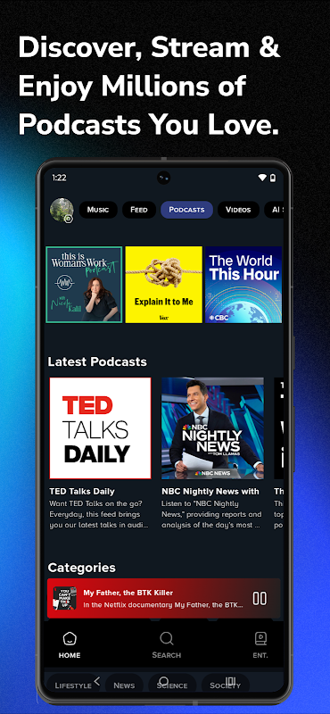 استمع إلى بودكاستك المفضلة أو اكتشف بودكاست جديدة. من التكنولوجيا إلى الجريمة الحقيقية، ومن التحفيز إلى الكوميديا - Zene يُلبي جميع احتياجاتك.