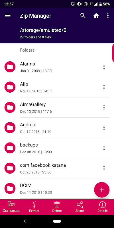 • يمكن لهذا التطبيق Zip فك ضغط أي نوع من الملفات وضغطها بسهولة حتى لا تصدق عينيك. سيبدو وقت الاستخراج بعد فك الضغط سرعة الضوء بالنسبة لك ، المستخدم ومن لا يمكنه استخدام ذلك في هذا العالم سريع الخطى الذي نعيش فيه؟