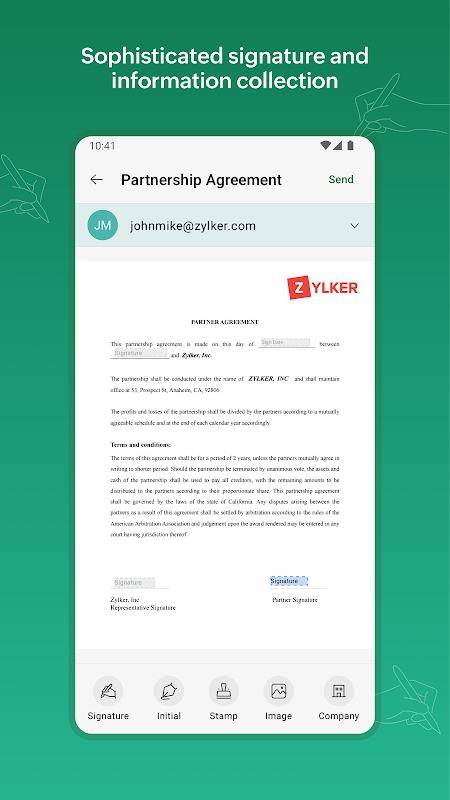 - التوقيع أثناء التنقل: قم بالتوقيع وإرسال المستندات في أي وقت وفي أي مكان.