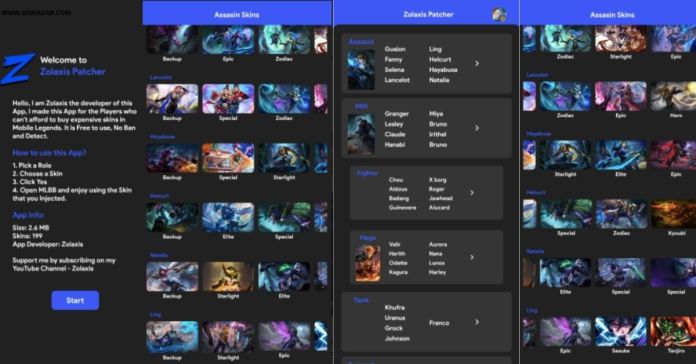 Zolaxis Mobile Patcher Injector Unlock Skins Guide App is an app made to let your read all the legend heroes skins and abilities including spells skills passive attacks and special powers and each heroes skins visual appearance of the abilities including all the kinds of heroes.