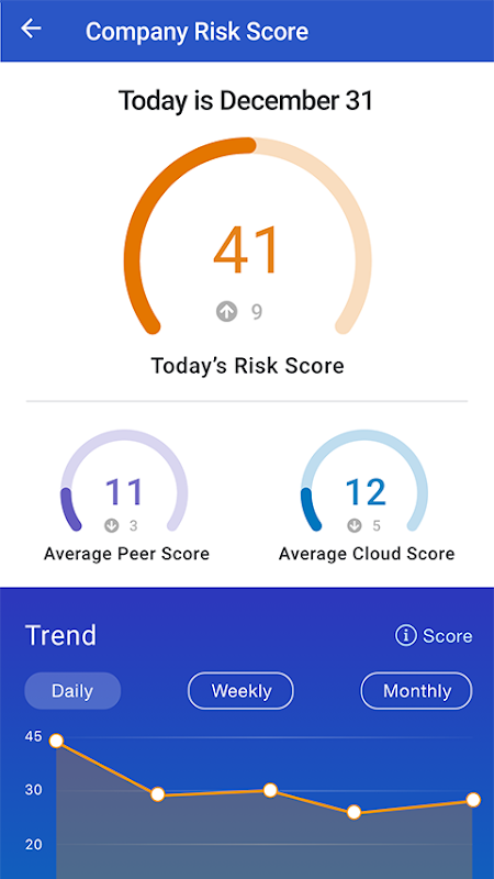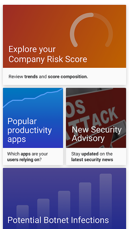 - الوضع الأمني - اتجاهات درجة مخاطر الشركة ، ملخص للتهديدات المحظورة ، مثل عمليات رد الاتصال في botnet ، هجمات التصيد الاحتيالي ومحاولات تنزيل المحتوى الضار
