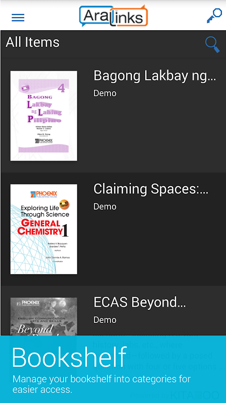 Note: Log-in credentials for this app are provided to each client school upon purchase of Aralinks eBooks.