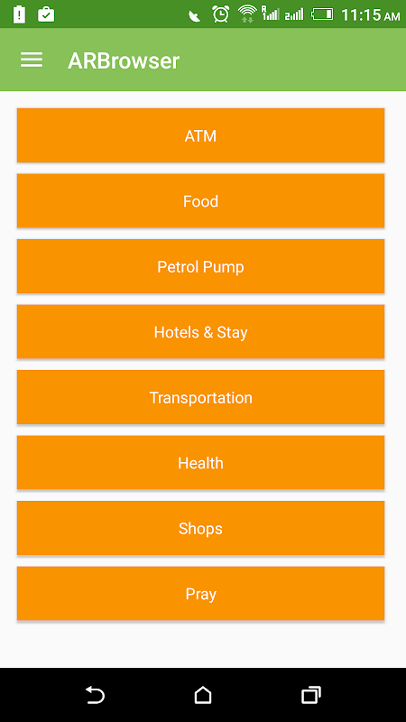 ARBrowser is a augmented reality based application which lets you see directions and distance of different places around you. The places are divided into eight major categories as ATMs, Food, Petrol pump, Hotels for stay, Transportation, Health, Shopping, Prayers. While keeping importance of these places in mind we have used augmented reality to deliver direction of these places.