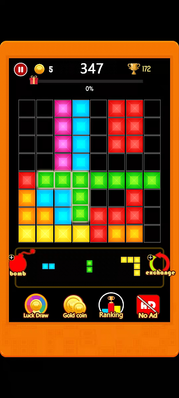 Block Puzzle is a simple and fun casual elimination game, very suitable for leisure time games. You can start playing right away with no learning curve. As long as one line is reached, it can be eliminated, which is very time consuming. Be careful to watch the time and don't overplay it!