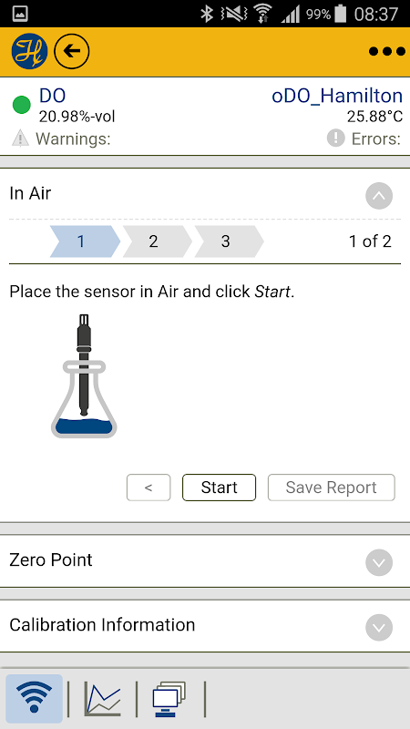 With the ArcAir application, it is possible to communicate wirelessly with Arc sensors in parallel to the process control system interface when an Arc Wi Bluetooth adapter is connected between the Arc sensor and the sensor cable.Within the ArcAir application, Hamilton provides a validation functionality that offers central management functionality of users and validation reports for calibration, verification, configuration, and communication within the GMP guidelines for all Arc sensors. Those functionalities are also ready for compliance with FDA CFR 21 Part 11 and Eudralex Volume 4 Annex 11.