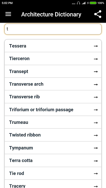 In addition, all the terms are listed alphabetically with faster search facility, easy to navigate through entire app.