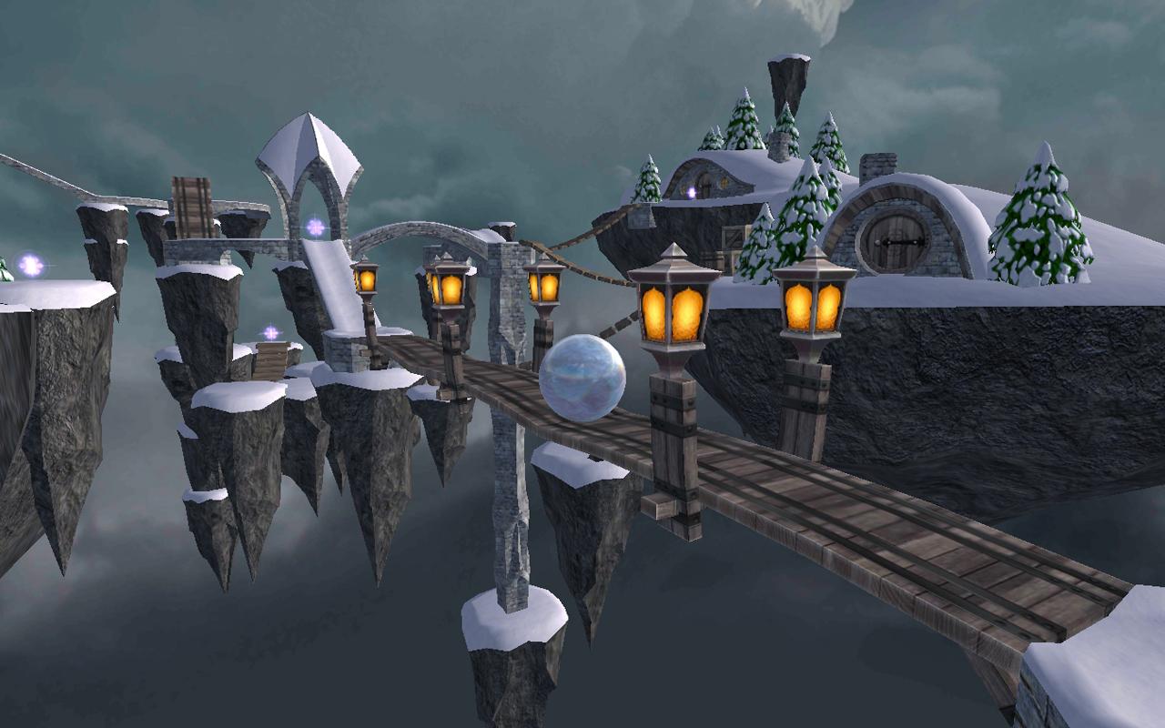 Admiring the scenery, overcome obstacles and collect snowflakes.