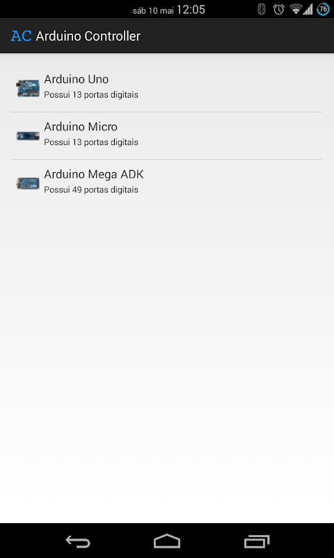 O aplicativo precisa que um código seja gravado no seu arduino antes da utilização. O código funciona em qualquer arduino.
