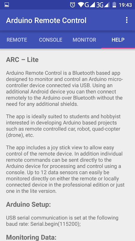 The app is well suited to students and hobbyist interested in developing Arduino based projects such as remote controlled car, robot, quad-copter (drone), etc.