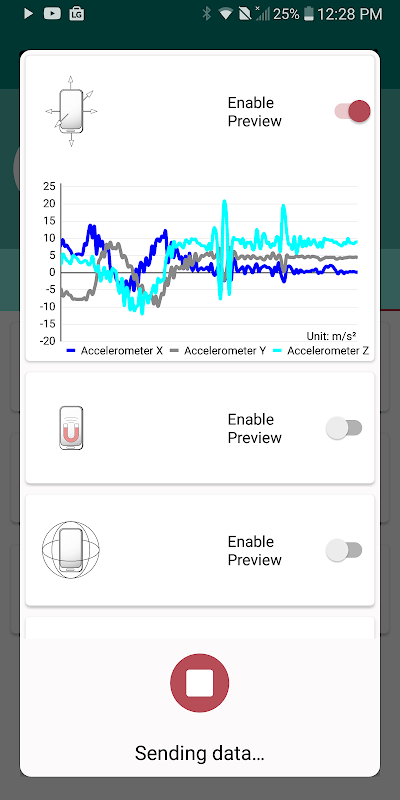* Streaming of Sensor data via Wireless Network (UDP) to your PC