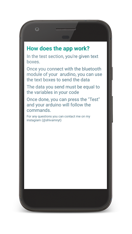 This application lets you establish a connection with Bluetooth devices of your arduino so that you can test your code and you can also use this for your Internet of Things(IoT) projects.