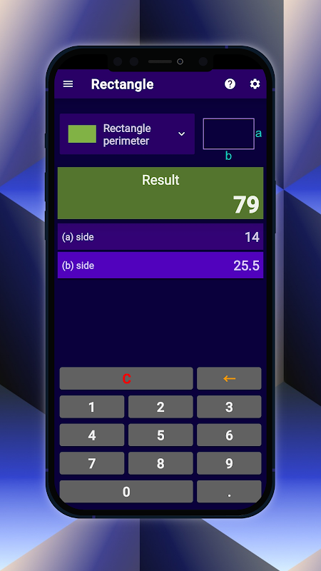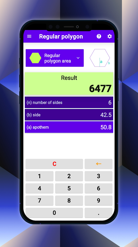 Application with which you can calculate the area (or surface) and the perimeter of the square, triangle, circle, rectangle, pentagon, rhombus, parallelogram, trapezoid and any regular polygon.