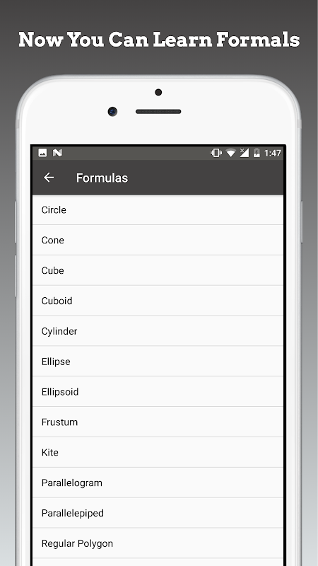 Very basic as well as complex formulas are listed. The image of object is also displayed for better clarity in understanding.