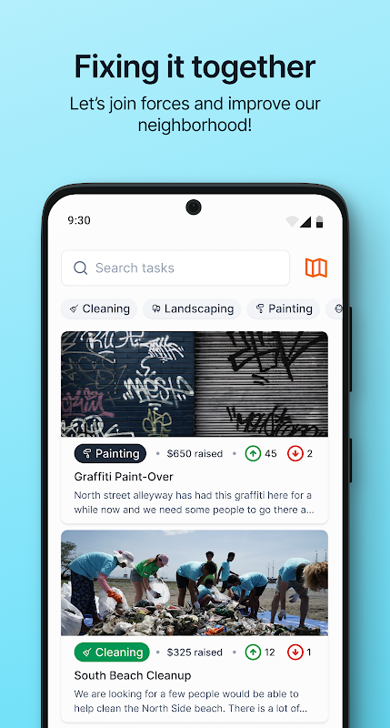 Neighbors will vote on the tasks that matter the most to help prioritize the work to be done, and they can also support a task by adding funding to it. Other neighbors can then decide to work on those tasks and get paid the raised amount.