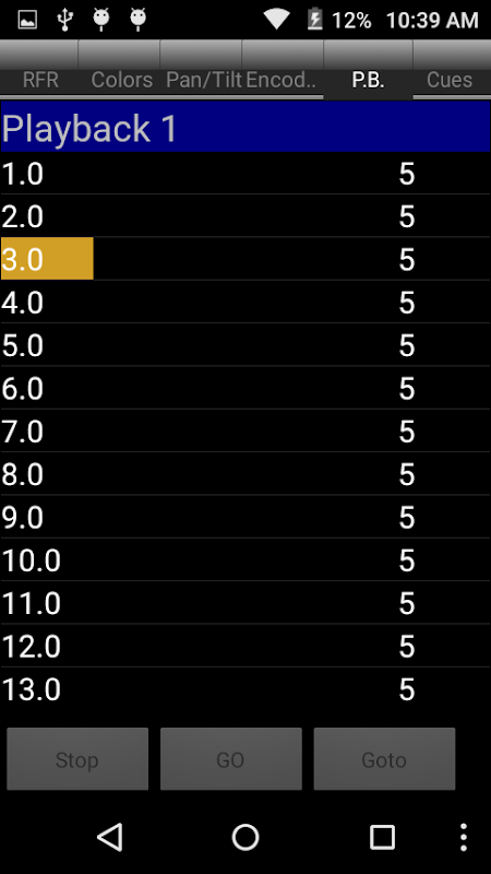 • View and interact with a Playback display; controls include Go, Stop/Back and Go to Cue