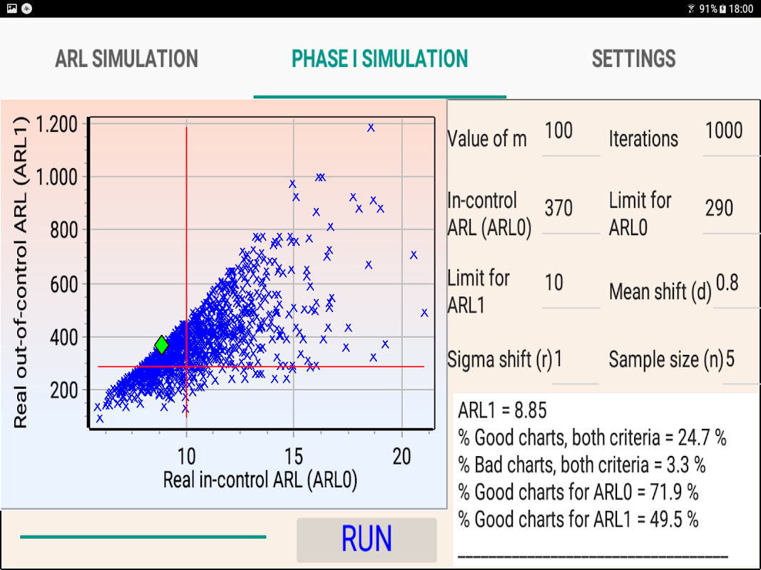 In addition, it simulates real performance of the Xbar chart (real in-control and out-of-control ARL) when the mean and sigma are estimated during Phase I.