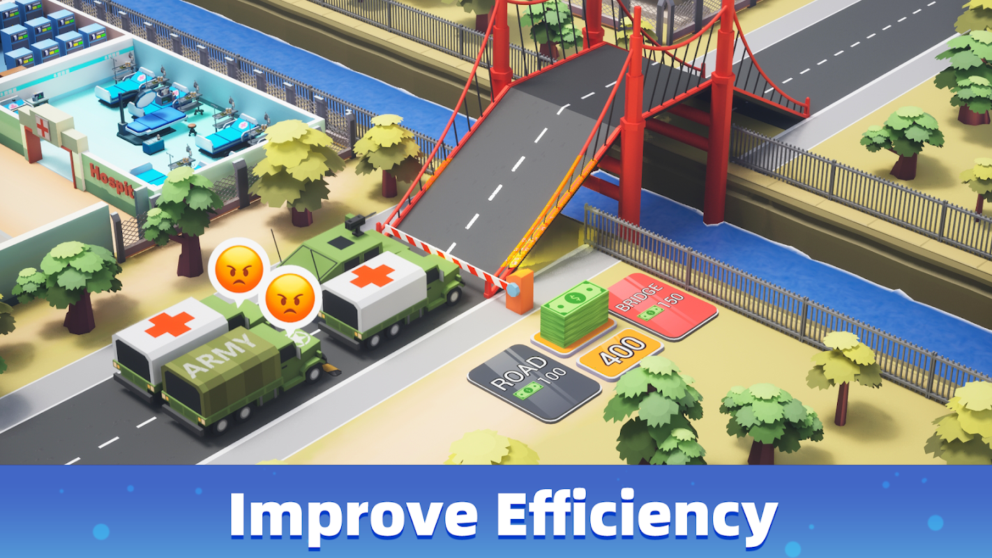 A wide range of Training Grounds for you to unlock! Target Training, Obstacle Course, Target Range, Urban Combat Course, Boxing Training, Grenade Range, Artillery Course, Tank Course... You can find them all here. All you need to do is tap and upgrade them. Invest wisely and develop your base with your funds, unlock training programs, improve your reputation, expand your armies, and build a powerful military and business empire!