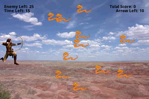 balloon those butterfly will be released. You must be careful to using arrow because in some level only last arrow can destroy the object. So there is no way to cheat. In the three level you just need to destroy balloon. The serious object will come. There will be some limit of arrow and time when the level is increased. In every level there is some opportunities to make some bonus score. It’s depends on the number of arrow and time you have taken to complete the level. One more think you must remember to play this game when you destroyed the enemy there is two option you will get. One is restart the level and other quit the game. If you restart the level then you score will be reset and that will start from zero. If you quit the game you have to start the game from the first level.