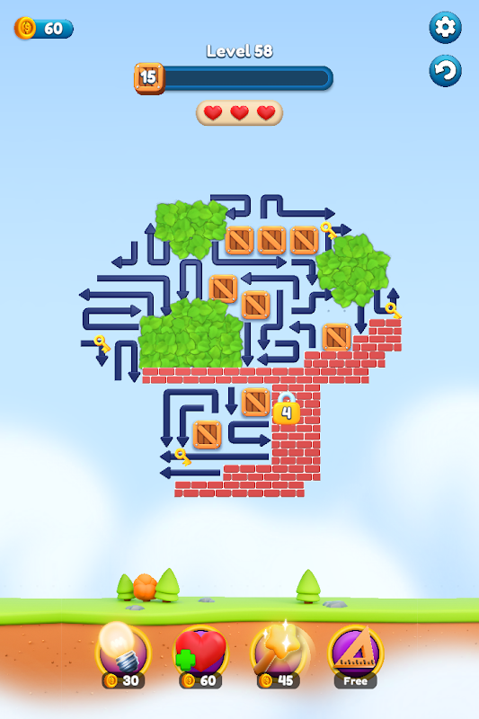 Slide arrows, avoid blocks, and clear the board using smart moves