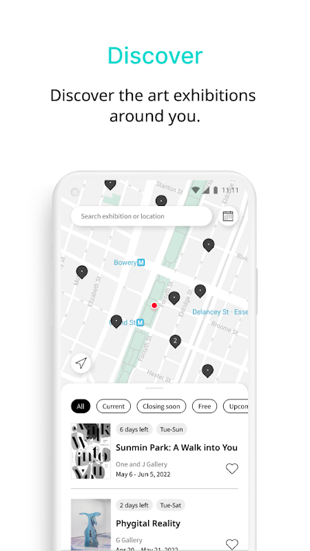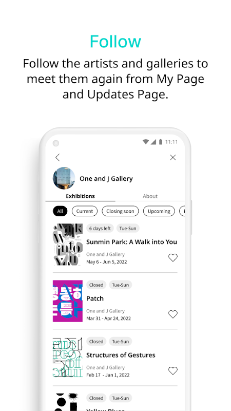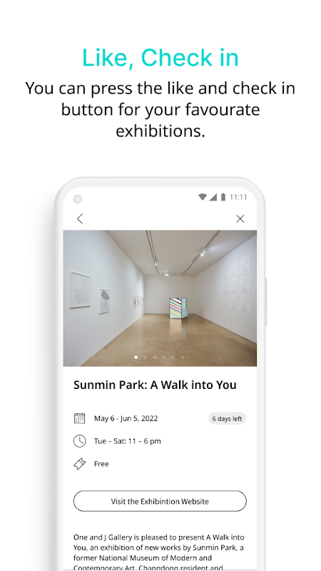 To use, tap the like button on the exhibitions so that you can record your favorite shows and archive your visits.
