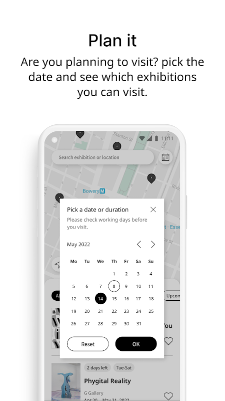 To use, tap the like button on the exhibitions so that you can record your favorite shows and archive your visits.