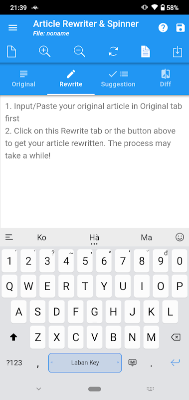 This Article Rewriter App is automatic tool that can help you to turn your ideas to articles by suggesting words / phrases when you write, plus the AI that can rewrite your article automatically. Our suggestion database is huge to make this tool the best of article creator / article rewriter on the Internet which you can find.