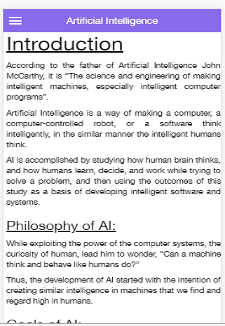 Artificial Intelligence - An offline guide app for student to learn about AI.