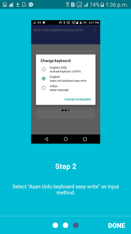 Asan Urdu keyboard Easy Write – A phonetic keyboard designed for the Urdu users who love to type in Urdu through English keyboard. Now chat on Whats App, Facebook, Twitter and any other social site with Roman Keyboard which is easy to use and cause no change to your keyboard settings and keyboard layout.