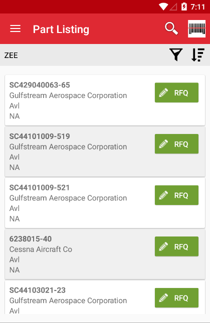 • Enhanced Search and Filter for finding electronic and aviation parts from inventory.