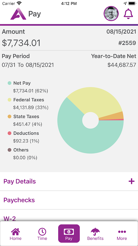 • View paychecks, tax and deduction details