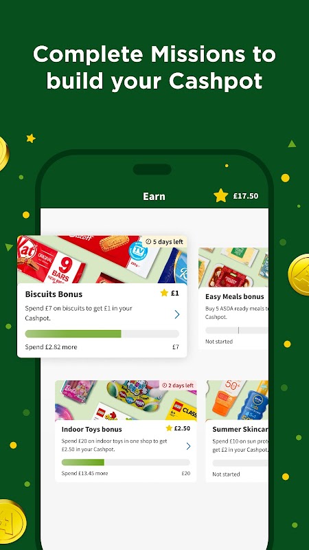Download the app and start scanning. It’s that simple. Across the store and online, you’ll find lots of ways to build your own Asda Rewards Cashpot. You can also use your app to check out how you’re progressing towards completing Missions and see when your favourite products are available as Star Products.