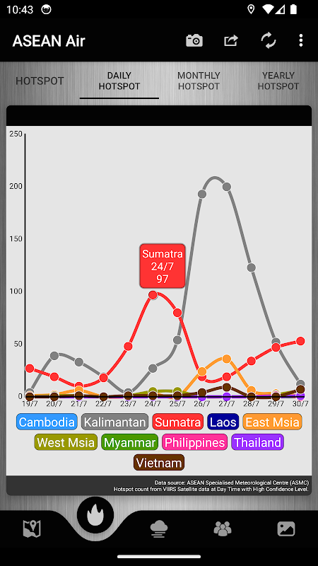 - Haze map with wind direction, hotspots location and haze coverage (Map update on evening everyday)