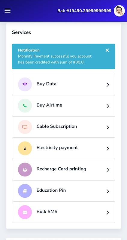 This is a telecommunication industry playing a major role in distribution, selling affordable and most cheapest data, airtime, Dstv subscription, Gotv subscription, Startimes subscription, Convert Airtime to Cash and Electricity Bill Payment.