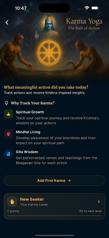 • Chat with Krishna – Ask anything and receive personalized answers from the Bhagavad Gita.