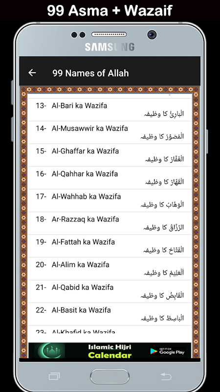 - 99 Allah Names(asma ul husna) in Urdu/Arabic.