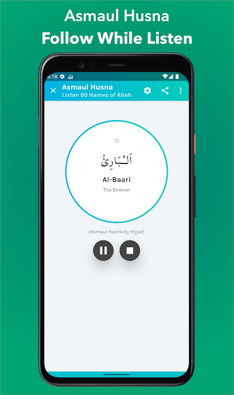 - Listen Asmaul Husna, names of Allah and follow them in a beautifully designed auto slide