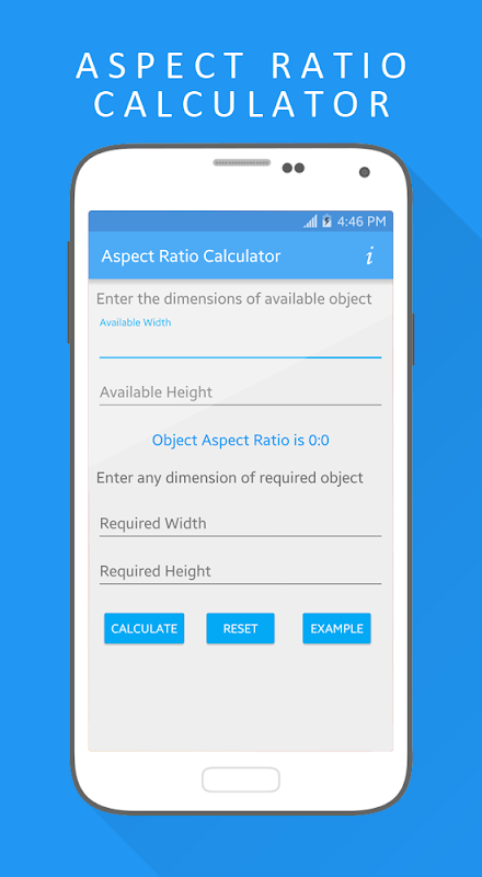 Aspect Ratio Calculator is a very simple and useful tool that makes it easy for you to calculate dimensions to re-size image or video. Aspect Ratio Calculator is very useful for those who works with image or video editing. You just have to enter the width and height of the object you already have. And just enter one value of required object to get the other one. You can view an example image of your required ratio object. So that you can easily observe in what shape your new values going to have. This application is the best you have to calculate Aspect Ratio.