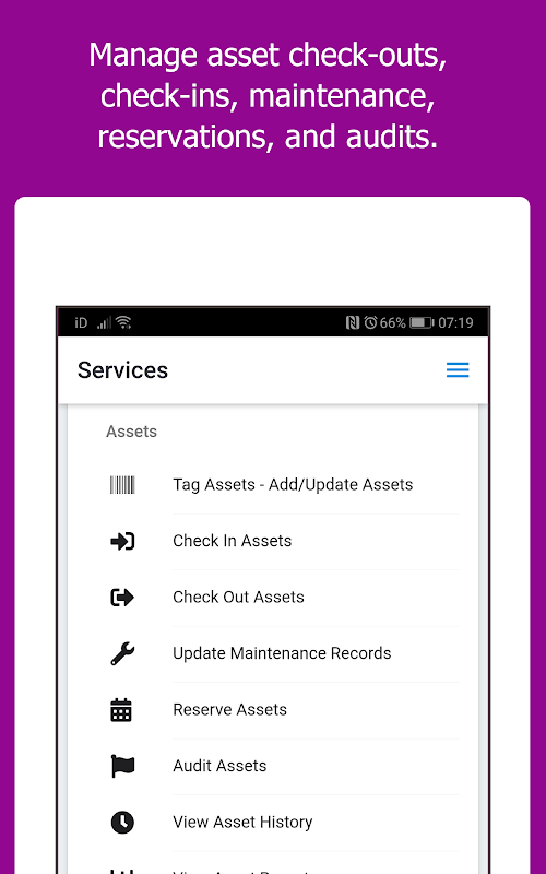 - View asset & inventory names when scanning their barcodes or NFCs.