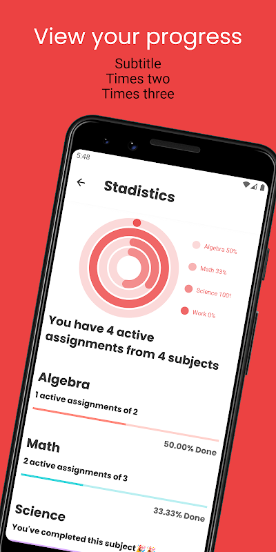 Receive reminders, personalize for your assignments, events and tasks to keep track on everything yo need to do. Add colors to your Subjects or change the app theme to have a better experience.