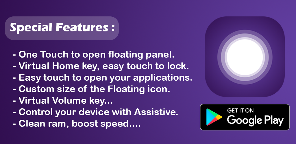 Quick touch to access recent apps, home screen, volume control and more settings. Assistive touch control center providing you the ultimate solution