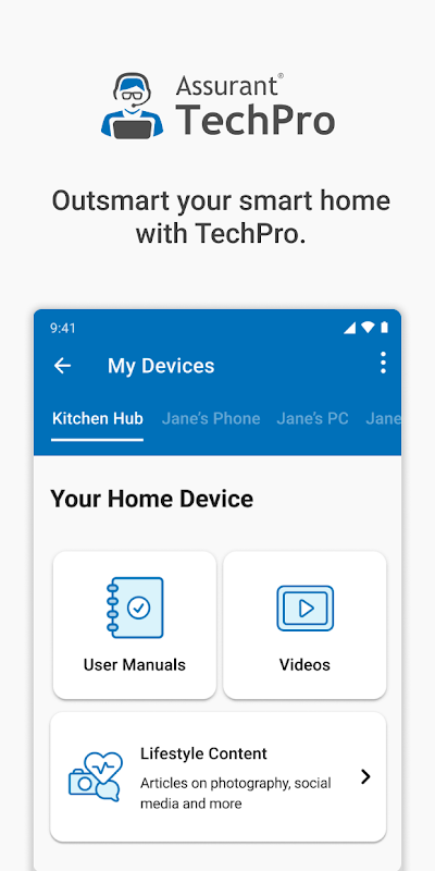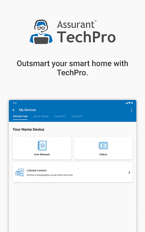 Assurant TechPro is the smart, one-stop solution for world-class tech support and assistance for all of your connected devices. The Assurant TechPro app is a smart amenity designed for residents living in participating communities. It gives you access to live premium tech support and it helps you with virtually any consumer electronic device through a support channel that’s convenient for you.