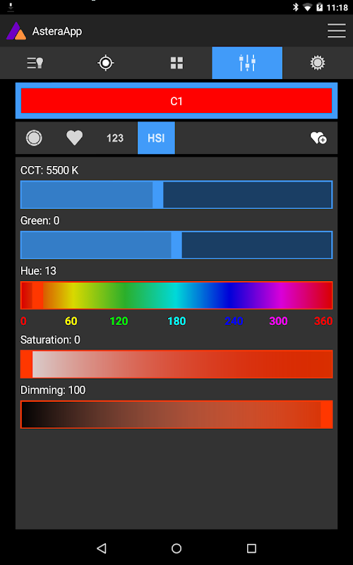 The AsteraApp offers several ways to select colors such as color-wheel, Filter Gels, color temperature, HSI, RGB and CIE 1931. Thanks to Astera’s ultra-precise Truecolor calibration, Astera fixtures can display the precise color that was selected.
