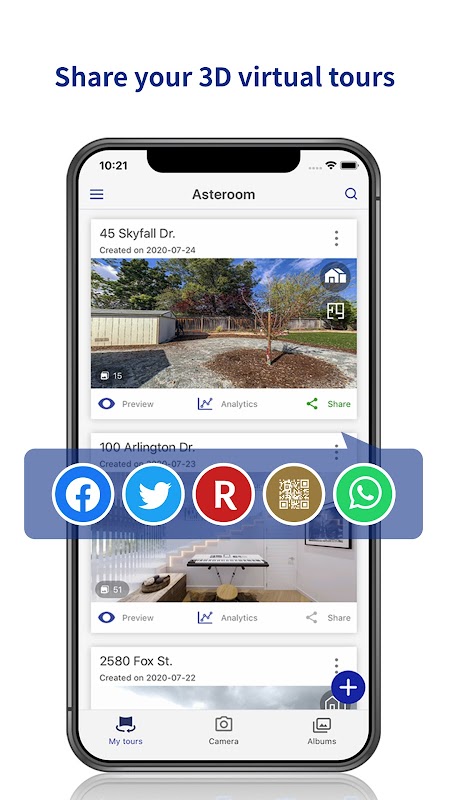 Asteroom is the easiest way to create 3D virtual tours. A 2000 sqft home can be completed in 10-15 minutes. Unlike other time-consuming solutions that require you buy expensive and bulky 3D cameras, Asteroom allows you to do everything including shooting, editing, and sharing the tours on your phone.