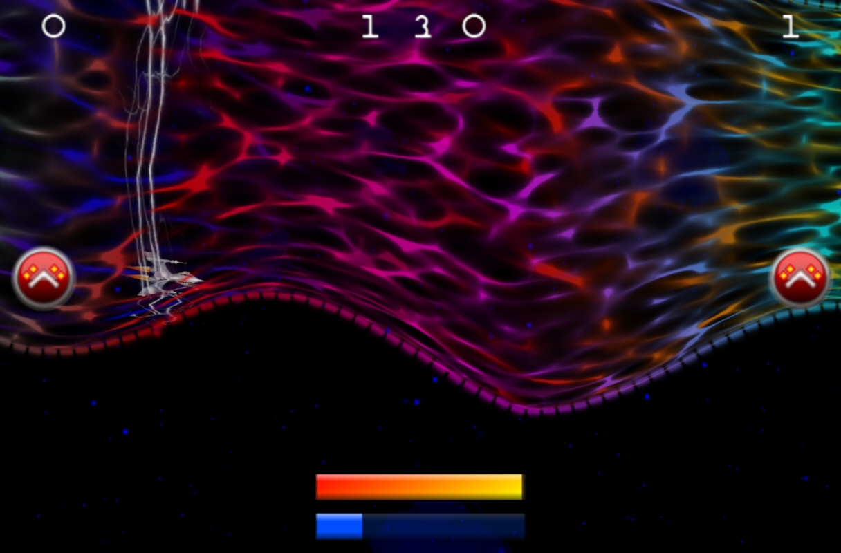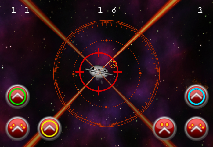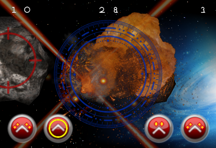 Ergo, it's tilt your device (left and right) to turn your ship, or a quick up and down to flip your ship, and target the highest-threat asteroid, that which will hit your ship first. You have not one, but two fire buttons to unleash laser-hell against the constantly incoming chunks of deadly space rock. Big rocks break into medium rocks, which break into small rocks, which break into harmless space dust.