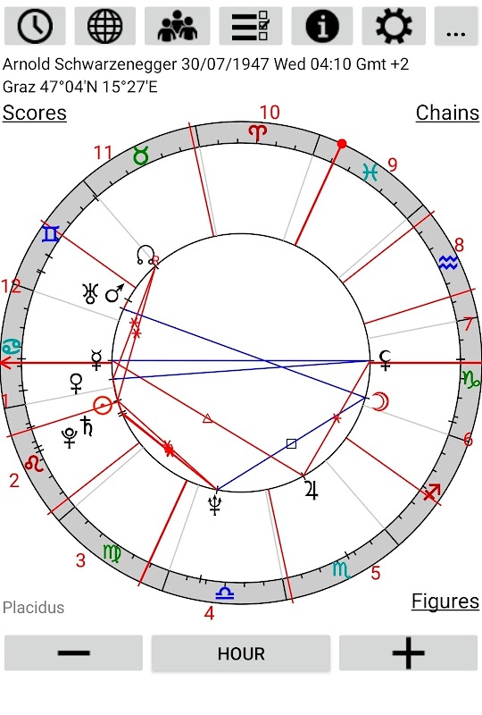 Astrological Charts Pro is a professional astrological program for Android, which reports 12 types of astrological charts, contains, besides planets, 20 asteroids and 24 fictitious points, including trans-Neptunian, and several lots.