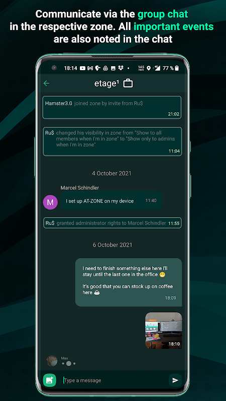 AT-ZONE is your personal guide to the world of geozones. Create virtual areas, invite friends, and exchange notifications for entry and exit. Group chats in each zone facilitate communication.