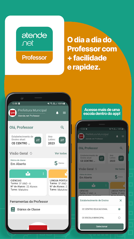 Multi Establishment: Access, from a single device, several Educational Establishments where he teaches classes.